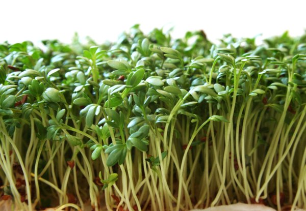 Cress (Lepidium sativum), sometimes referred to as garden cress to distinguish it from similar plants also referred to as cress, is a rather fast-growing, edible herb. Garden cress is genetically related to watercress and mustard, sharing their peppery, tangy flavor and aroma. In some regions, garden cress is known as mustard and cressgarden pepper cresspepperwort pepper grass, or poor man’s pepper.[1][2]