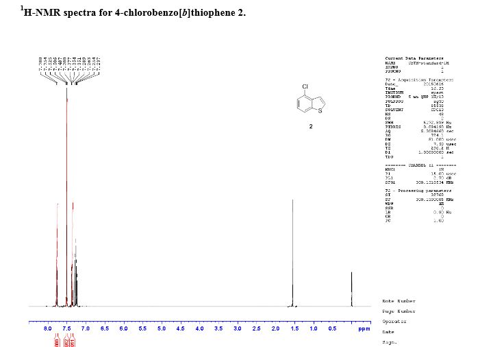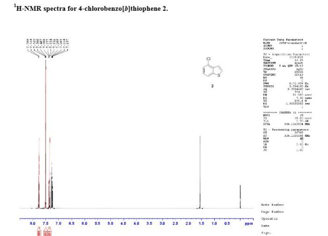 diazabicyclo[5.4.0]-undec-7-ene GAVE compound. 4-chlorobenzo[b]thiophene. 1H-NMR (DMSO-d6) d ppm; 7.38 (1H, t, J = 8.4