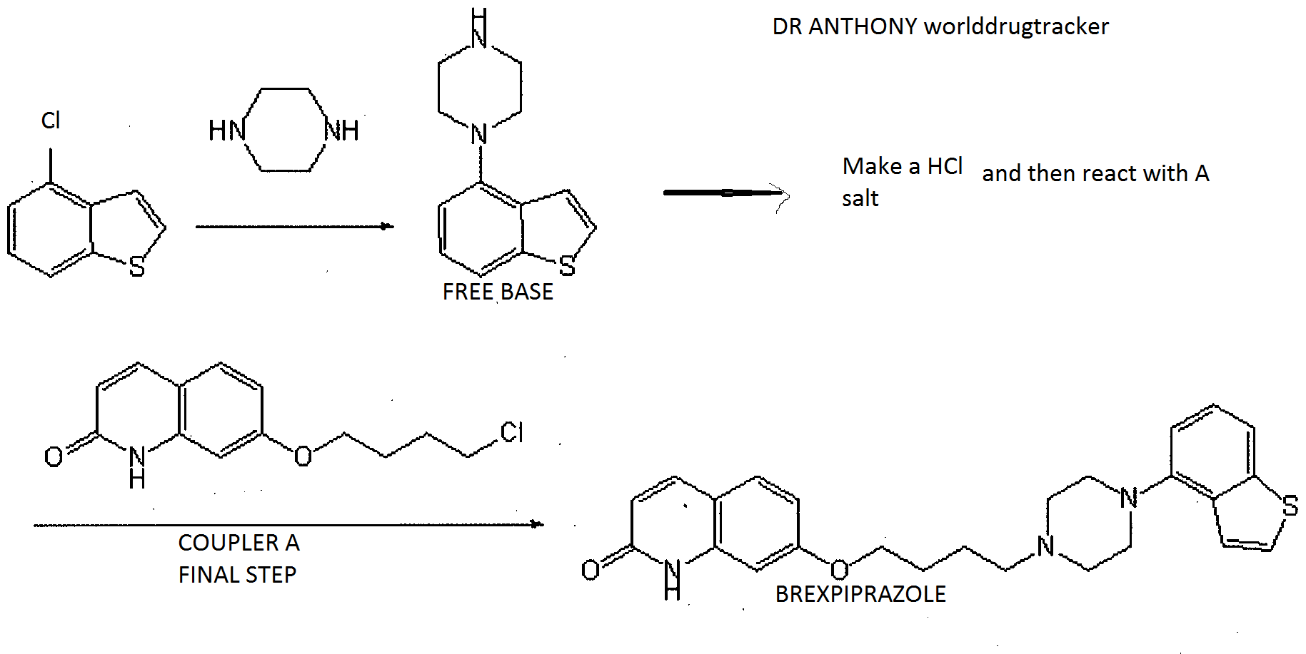 The drug is being developed by Otsuka, and is considered to be a successor[3] of its top-selling antipsychotic agent aripiprazole(brand names: Abilify, Aripiprex). Otsuka’s US patent on aripiprazole expired on October 20, 2014;[4] however, due to a pediatric extension, a generic will not become available until at least April 20, 2015.[5]