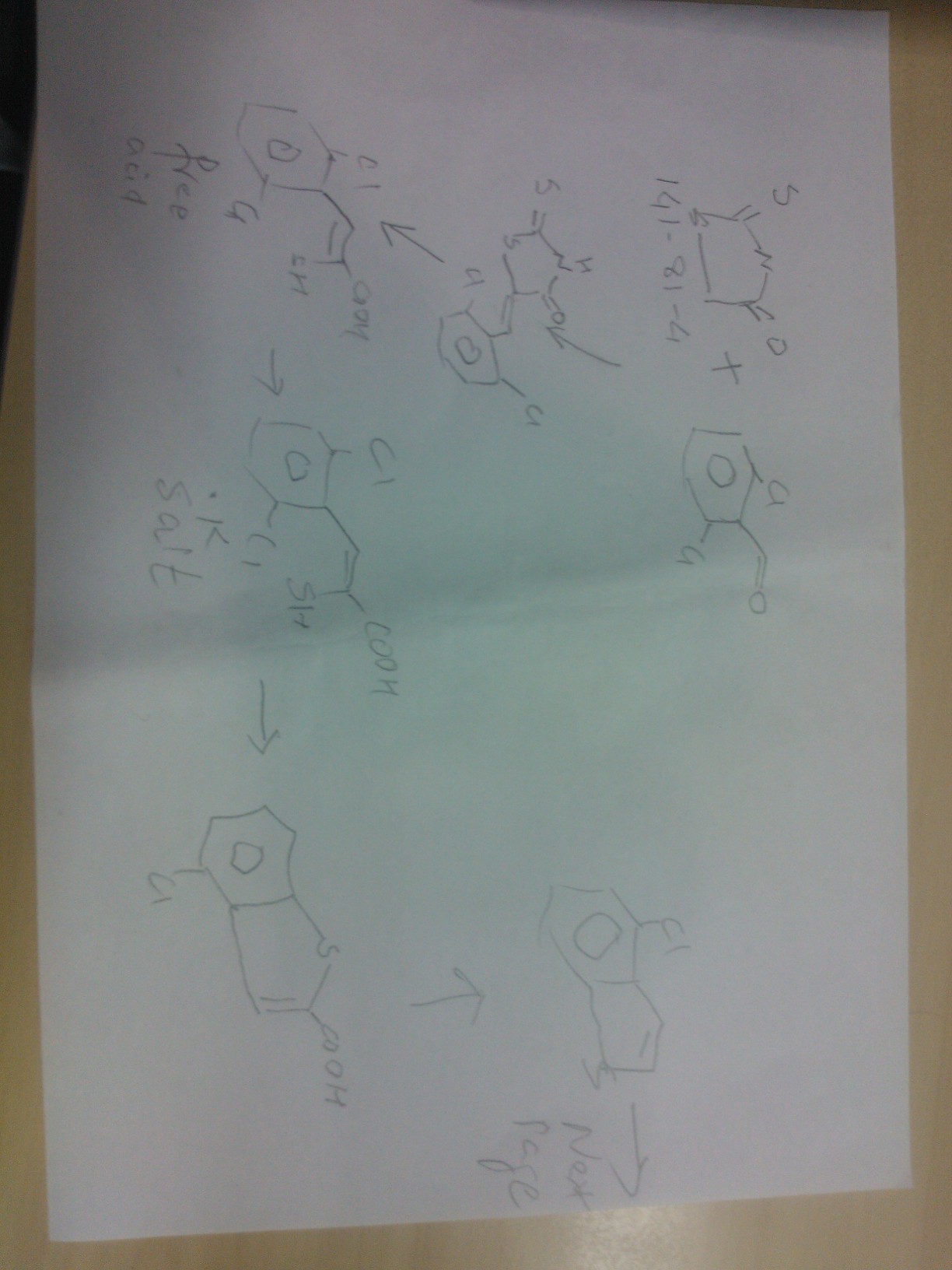 IN THE BELOW PIC 2,6-Dichlorobenzaldehyde AND RHODANINE WERE REACTED TO GIVE 2,6-dichlorobenzylidenerhodanine.