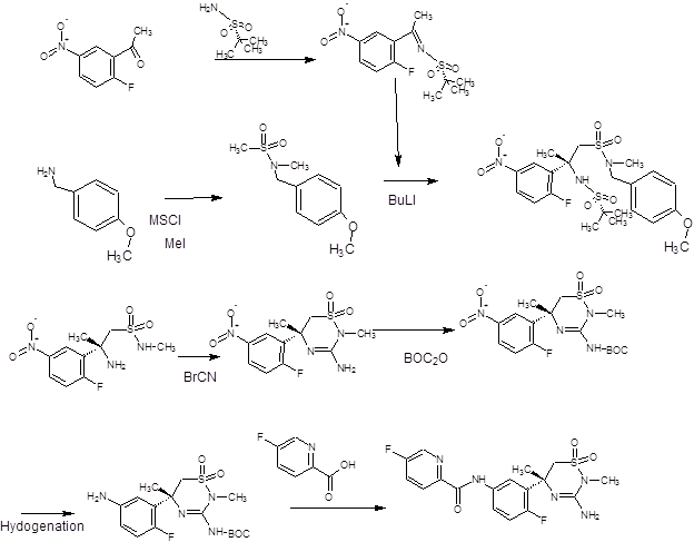 Reagents: (i) Zn(CN)2, Pd(PPh3)4, NMP; (ii) (i?)-2-methylpropane-2-sulfmamide, Ti(OEt)4, toluene; (iii) NaBH4, THF; (iv) 4M HCl in dioxane, MeOH; (v) Boc20, TEA, DCM; (vi) NH2OH HCl, TEA, EtOH; (vii) HOBt, EDC, substituted benzoic acid, DMF (viii) 4M HCl in dioxane; (ix) (a) R’-LG or R”-LG, where LG represents a leaving group, K2C03, CH3CN; (b) R -C02H or R2-C02H, HOBt, EDC, DMF or R -COCl or R2-COCl, TEA, DCM; (c) R -S02C1 or R3-S02C1, TEA, DCM (d) R2-CHO, HO Ac, NaBH4 or NaCNBH3 or Na(OAc)3BH, MeOH; (e) R -OCOCl or R2-OCOCl, DIEA, DMF; (f) HN(R5R5), CDI, TEA, DCM; (g) H2NS02NH2, Δ, dioxane; (h)