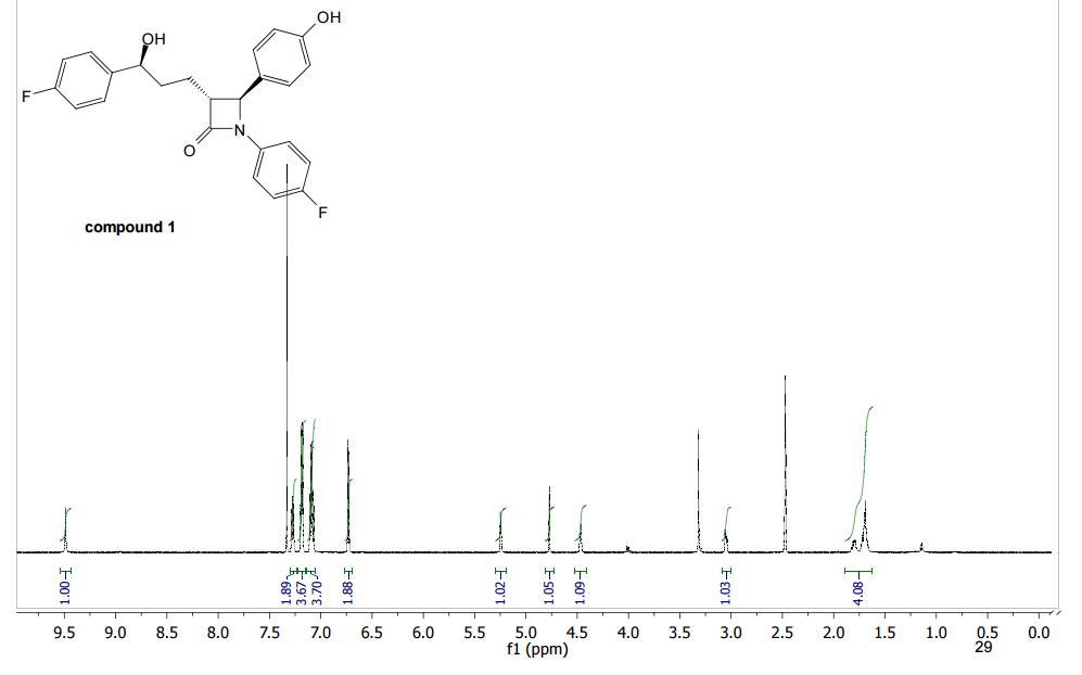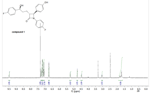 FIG. 1 is a representative 1H NMR spectrum of Compound I Form A.