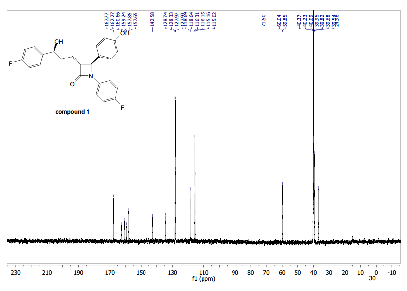 FIG. 2 is a representative 13C NMR spectrum of Compound I Form A.