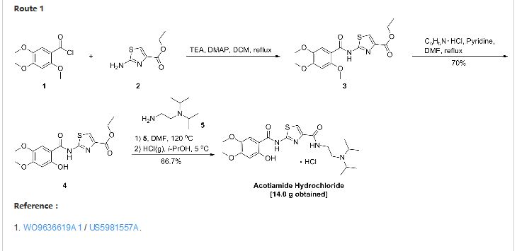 Acotiamide hydrochloride, chemical name: N_ [2_ (diisopropylamino) ethyl] -2- [(2-hydroxy-4,5-dimethoxybenzoyl) amino ] thiazole-4-carboxamide hydrochloride, the following structure: