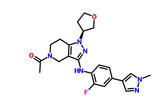 [H][C@@]1(CCOC1)N1N=C(NC2=C(F)C=C(C=C2)C2=CN(C)N=C2)C2=C1CCN(C2)C(C)=O