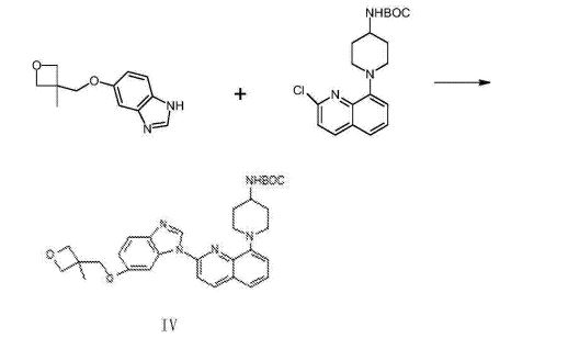 The condensation of tetrahydropyran-4-carbonyl chloride (V) with refluxing 1,3-difluorobenzene (VI) by means of AlCl3 gives 1-(2,4-difluorophenyl)-1-(tetrahydropyran-4-yl)methanone (VII), which is treated with hydroxylamine hydrochloride and sodium acetate in refluxing ethanol/water to yield the corresponding oxime (VIII). The cyclization of (VIII) by means of KOH in refluxing methanol affords 6-fluoro-3-(tetrahydropyran-4-yl)-1,2-benzisoxazole (IX), which is treated with NaI and Ac-Cl and then with K2CO3 in refluxing acetonitrile to provide the 5-iodopentanol derivative (X). The reaction of the OH group of (X) with Ms-Cl and TEA in dichloromethane gives the corresponding mesylate (XI), which is finally cyclized with the intermediate amine (IV) by means of NaHCO3 in refluxing acetonitrile to yield the target piperidine.