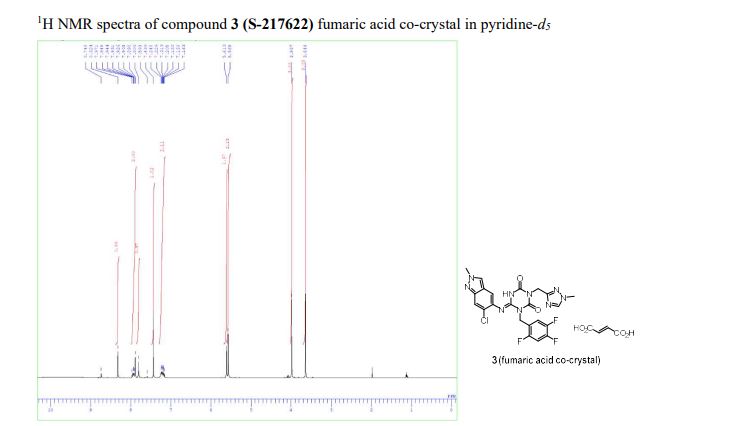 A mixture of 3 (S-217622) (1.17 g, 2.2 mmol) and fumaric acid (278 mg, 2.4 mmol) in EtOAc (5.9 mL) was stirred at room temperature for 45 min. The suspension was filtrated to afford 3 (S-217622) fumaric acid co-crystal (1.37 g, 95 %) as a white solid. 1H NMR (400 MHz, pyridine-d5) δ 3.64 (s, 3H), 3.99 (s, 3H), 5.56 (s, 2H), 5.61 (s, 2H), 7.16-7.25 (m, 2H), 7.44 (s, 2H), 7.81 (s, 1H), 7.89 (s, 1H), 7.89-7.97 (m, 1H), 8.32 (s, 1H).