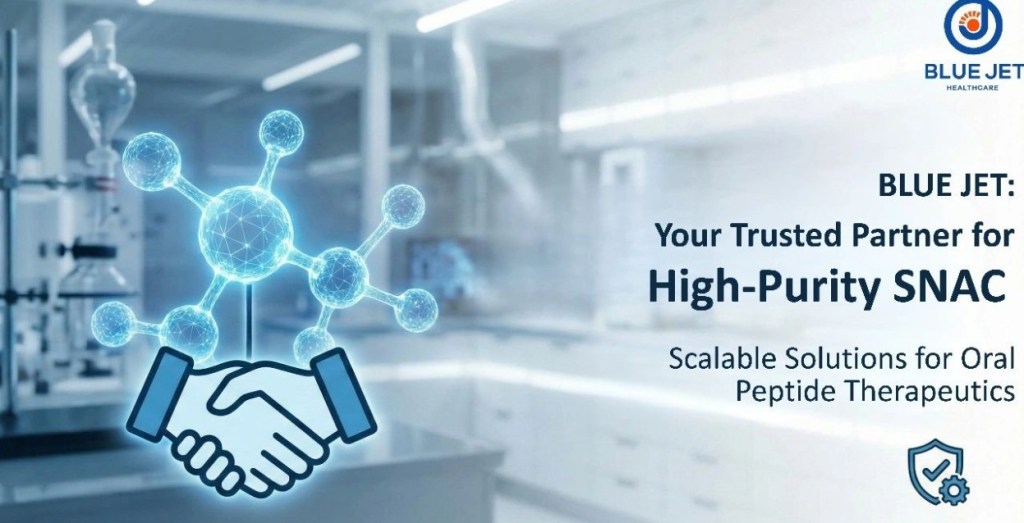 At Blue Jet Healthcare Ltd, we specialize in the scalable, high-purity production of SNAC—a critical excipient powering the next generation of oral peptide therapeutics.