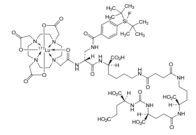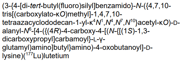 2-[4-[2-[[(2R)-1-[[(1R)-1-carboxy-5-[[4-[[(4R)-4-carboxy-4-[[(4S)-4-carboxy-4-[[(1S)-1,3-dicarboxypropyl]carbamoylamino]butanoyl]amino]butyl]amino]-4-oxobutanoyl]amino]pentyl]amino]-3-[[4-[ditert-butyl(fluoro)silyl]benzoyl]amino]-1-oxopropan-2-yl]amino]-2-oxoethyl]-7,10-bis(carboxylatomethyl)-1,4,7,10-tetrazacyclododec-1-yl]acetate;lutetium-177(3+)