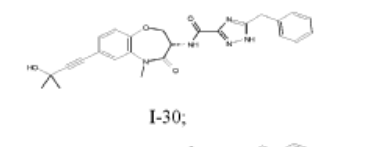 I-30: (S)-5-benzyl-N-(7-(3-hydroxy-3-methylbut-1-yn-1-yl)-5-methyl-4-oxo-2,3,4,5-tetrahydrobenzo[b][1,4]oxazepin-3-yl)-1H-1,2,4-triazole-3-carboxamide;