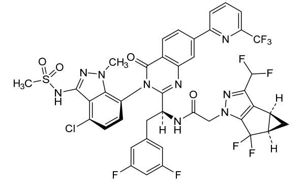 N-[(1S)-1-[3-[4-chloro-3-(methanesulfonamido)-1-methylindazol-7-yl]-4-oxo-7-[6-(trifluoromethyl)-2-pyridinyl]quinazolin-2-yl]-2-(3,5-difluorophenyl)ethyl]-2-[(2S,4R)-9-(difluoromethyl)-5,5-difluoro-7,8-diazatricyclo[4.3.0.02,4]nona-1(6),8-dien-7-yl]acetamide