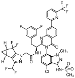 N-[(1S)-1-[3-[4-chloro-3-(methanesulfonamido)-1-methyl-indazol-7-yl]-4-oxo-7-[6-(trifluoromethyl)-2-pyridyl]quinazolin-2-yl]-2-(3,5-difluorophenyl)ethyl]-2-[(2S,4R)-9-(difluoromethyl)-5,5-difluoro-7,8-diazatricyclo[4.3.0.02,4]nona-1(6),8-dien-7-yl]acetamide