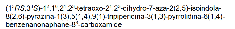 Zelebrudomide, (S)- is the S-enantiomer of zelebrudomide, an orally bioavailable chimeric targeting molecule (CTM) and targeted degrader of Bruton’s tyrosine kinase (BTK), with potential immunomodulatory drug (IMiD) and antineoplastic activities. Zelebrudomide is comprised of a cereblon (CRBN)-binding moiety conjugated, via a linker, to a BTK-binding moiety. Upon administration, zelebrudomide targets and binds to BTK with its BTK-targeting moiety. Upon binding, the CRBN-binding moiety recruits CRBN, a component of the CRL4-CRBN E3 ubiquitin ligase complex. This catalyzes ubiquitination and proteasome-mediated degradation of BTK, and prevents the activation of the B-cell antigen receptor (BCR) signaling pathway. This prevents both B-cell activation and BTK-mediated activation of downstream survival pathways. This leads to an inhibition of the growth of malignant B-cells that overexpress BTK. In addition, zelebrudomide catalyzes the degradation of CRBN neosubstrates Aiolos (IKZF3) and Ikaros (IKZF1), two transcription factors regulating T-cell function. This modulates the activity of the immune system and increases the activation of T-lymphocytes, thereby increasing T-cell-mediated anti-tumor effects. BTK, a member of the src-related BTK/Tec family of cytoplasmic tyrosine kinases, is overexpressed in B-cell malignancies; it plays an important role in B-lymphocyte development, activation, signaling, proliferation and survival. CRBN, the substrate recognition component of the CRL4-CRBN E3 ubiquitin ligase complex, plays a key role in the ubiquitination of certain proteins. Compared to BTK inhibitors, zelebrudomide may overcome tumor resistance associated with BTK inhibitor-induced resistance mutations.