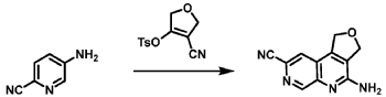 [0164] Step 1: To a solution of 3-(4-(trifluoromethyl)phenyl)morpholine (0.100 g, 0.432 mmol, Enamine), 4-((2,4-dimethoxybenzyl)amino)-l,3-dihydrofuro[3,4-c][l,7]naphthyridine-8-carboxylic acid hydrochloride (138) (0.271 g, 0.649 mmol) and l,l’-dimethyltriethylamine (0.559 g, 0.755 mL, 4.32 mmol, Sigma- Aldrich Corporation) in DMF (4 mL) was added bromotripyrrolidinophosphonium hexafluorophosphate (0.202 g, 0.432 mmol, Sigma-Aldrich Corporation) and the resulting mixture was heated at 50 °C for 30 min. The reaction was brought to rt, diluted with water, sat.NaHCCh and extracted with EtOAc (3x). The combined organics were dried over Na2SO4, filtered and concentrated. The residue was then chromatographed on silica gel using 0-50% 3:1 EtOAc/EtOH in heptane to afford (4-((2,4-dimethoxybenzyl)amino)- 1 ,3 -dihy drofuro [3 ,4-c] [ 1 ,7]naphthyridin-8-y 1) (3 – (4 -(trifluoromethyl)phenyl)morpholino)methanone (0.160 g, 0.269 mmol, 62.2% yield) as a light yellow solid, m/z (ESI): 595 (M+H)+.