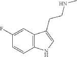 N-ethyl-2-(5-fluoro-1H-indol-3-yl)-N-methylethan-1-amine (12) was synthesized in a similar manner as described above for N-(2-(5-fluoro-1H-indol-3-yl)ethyl)-N-propylpropan-1-amine (5), starting from 2-(5-fluoro-1H-indol-3-yl)-N-methylethan-1-amine (0.7 g, 3.64 mmol), and acetaldehyde (0.96 g, 21.8 mmol), to provide the title compound as a colorless oil after purification by column chromatography using silica gel as a stationary phase and 20% EtOH/EtOAc (1% Et 3N v/v) as the mobile phase (0.62 g, 2.81 mmol, 77.2% yield), and subsequently the corresponding HCl salt as a white crystalline solid. HR-ASAP-MS: m/z 221.1442 (theoretical [M+H] +, C 13H 18FN 2 +), m/z 221.1449 (observed, Δ=−3.2 ppm). 1H-NMR (400 MHz, d 6-DMSO) δ 11.15 (s, 1H), 10.74 (s, 1H), 7.44 (dd, J=10.1, 2.5 Hz, 1H), 7.36 (dd, J=8.8, 4.6 Hz, 1H), 7.33 (d, J=2.3 Hz, 1H), 6.93 (dt, J=9.2, 2.5 Hz, 1H), 3.31-3.13 (m, 4H), 3.13-3.05 (m, 2H), 2.78 (d, J=3.1 Hz, 3H), 1.26 (t, J=7.3 Hz, 3H). 13C-NMR (101 MHz, d 6-DMSO) δ 156.74 (d, J=231.1 Hz, 1C), 132.88 (s, 1C), 126.96 (d, J=10.0 Hz, 1C), 125.42 (s, 1C), 112.48 (d, J=9.9 Hz, 1C), 109.51 (s, 1C), 109.32 (d, J=26.0 Hz, 1C), 103.13 (d, J=23.1 Hz, 1C), 54.37 (s, 1C), 49.82 (s, 1C), 38.13 (s, 1C), 19.68 (s, 1C), 8.79 (s, 1C). 19F-NMR (377 MHz, d 6-DMSO) δ−124.79 (s, 1F).