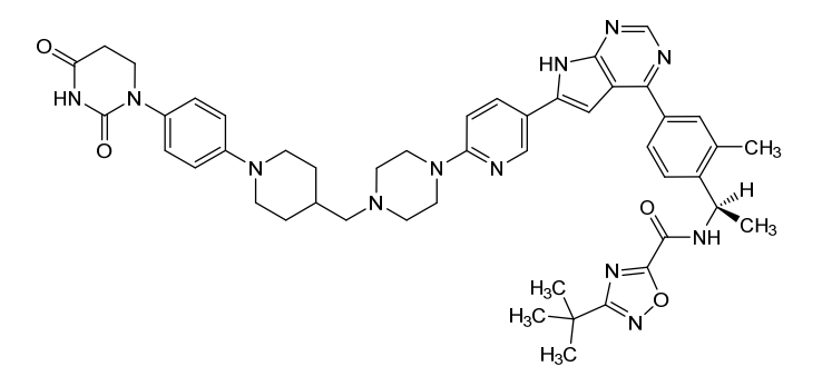 3-tert-butyl-N-[(1R)-1-[4-[6-[6-[4-[[1-[4-(2,4-dioxo-1,3-diazinan-1-yl)phenyl]piperidin-4-yl]methyl]piperazin-1-yl]-3-pyridinyl]-7H-pyrrolo[2,3-d]pyrimidin-4-yl]-2-methylphenyl]ethyl]-1,2,4-oxadiazole-5-carboxamide