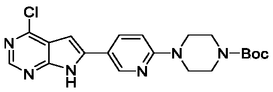 A mixture of 4-chloro-6-iodo-7H-pyrrolo [2, 3-d] pyrimidine (3 g, 10.73 mmol) , tert-butyl 4- (5- (4, 4, 5, 5-tetramethyl-1, 3, 2-dioxaborolan-2-yl) pyridin-2-yl) piperazine-1-carboxylate (4.18 g, 10.73 mmol) , Na 2CO 3(1.25 g, 11.80 mmol) and Pd (dppf) Cl 2(0.39 g, 0.537 mmol) in dioxane (120 mL) and H 2O (20 mL) was stirred in a sealed tube at 85 ℃ overnight. After cooling, the reaction mixture was filtered and the solid was washed with 20 mL of MeOH and dried under vacuum to afford the product (4.05 g, 91%) . [M+H] += 415.0.