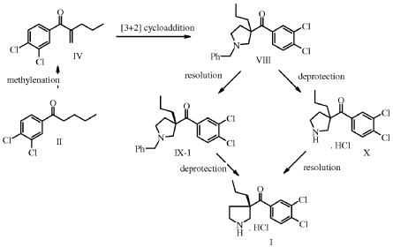 Synthesis of (3,4-Dichloro-phenyl)-(3-(S)-propyl-pyrrolidin-3-yl)-methanonehydrochloride I