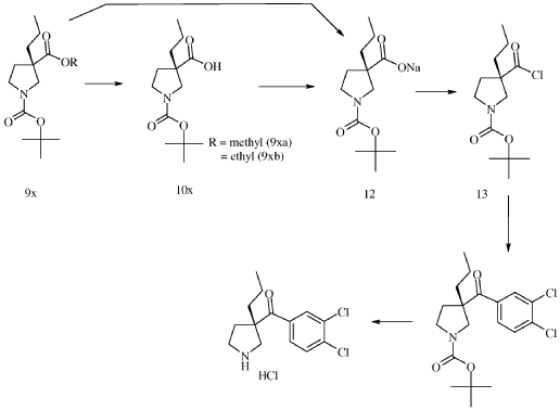Example 1. Synthesis of (3,4-dichloro-phenyl)-((S)-3-propyl-pyrrolidin-3-yl)-methanone hydrochloride (15) quarterhydrate [See U.S. Patent No. 9,527,810]