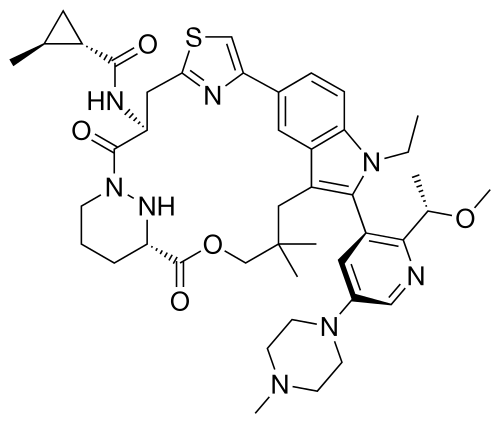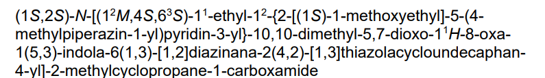 trans-(1S,2S)-N-[(7S,13S)-21-ethyl-20-[2-[(1S)-1-methoxyethyl]-5-(4-methylpiperazin-1-yl)-3-pyridinyl]-17,17-dimethyl-8,14-dioxo-15-oxa-4-thia-9,21,27,28-tetrazapentacyclo[17.5.2.12,5.19,13.022,26]octacosa-1(25),2,5(28),19,22(26),23-hexaen-7-yl]-2-methylcyclopropane-1-carboxamide
