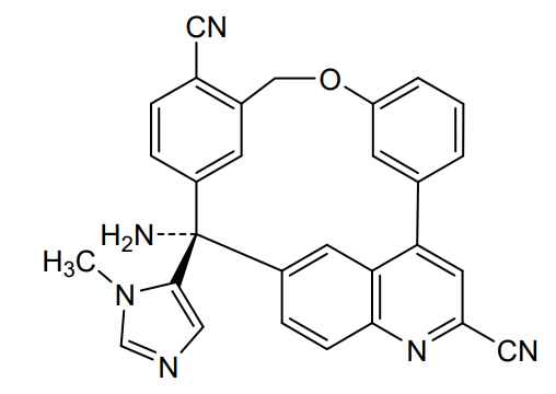 14-amino-14-(3-methylimidazol-4-yl)-7-oxa-19-azapentacyclo[13.6.2.12,6.19,13.018,22]pentacosa-1(22),2(25),3,5,9,11,13(24),15(23),16,18,20-undecaene-10,20-dicarbonitrile