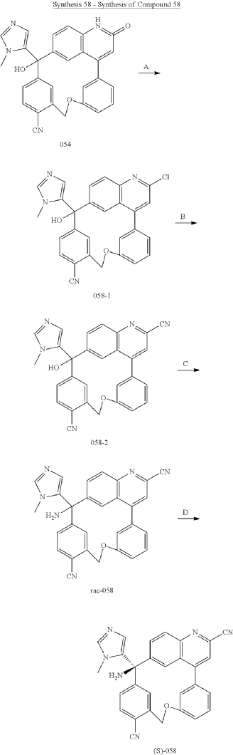 Step D: Preparation of (S)-3-amino-3-(1-methyl-1H-imidazol-5-yl)-6-oxa-2(4,6)-quinolina-1,4(1,3)-dibenzenacyclohexaphane-22,44-dicarbonitrile ((S)-058)