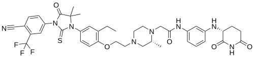 2-[(2R)-4-[2-[4-[3-[4-cyano-3-(trifluoromethyl)phenyl]-5,5-dimethyl-4-oxo-2-sulfanylideneimidazolidin-1-yl]-2-ethylphenoxy]ethyl]-2-methylpiperazin-1-yl]-N-[3-[[(3R)-2,6-dioxopiperidin-3-yl]amino]phenyl]acetamide