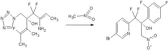 [5] Compound (I) obtained by the procedures described in WO 2014/039899 and WO 2015/127310 comprises residual solvent levels well above the limits described in the International Conference on Harmonization of Technical Requirements for Registration of Pharmaceuticals for Human Use (“ICH”) guidelines. In general, manufacturing processes producing residual solvent levels near or above the ICH limits are not desirable for preparing active pharmaceutical ingredients (APIs).