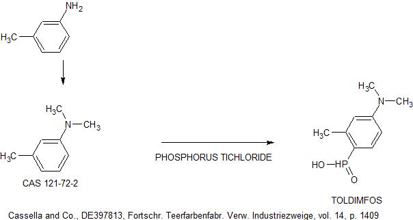 Literature References: Prepd from N,N-dimethyl-m-toluidine and phosphorus trichloride: Benda, Schmidt, DE397813 (1924 to Cassella), Frdl.14, 1409.