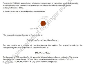 The drug consists of intravenously administered bioavailable iron which allows for more efficient replenishment of the body’s iron stores than oral iron supplements, without their associated common side effects. Ferumoxytol is a blood pool agent, a true intravascular contrast agent that remains in the blood stream for an extended period of time. Based on this quality, the product may be useful as a contrast agent in a wide range of applications in MRI.