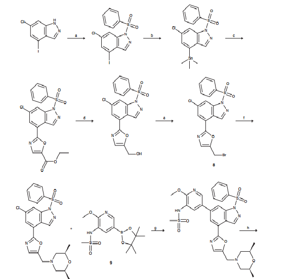 WO2012032067A1 6 Sep 2011 15 Mar 2012 Glaxo Group Limited Polymorphs and salts of n- [5- [4- (5- { [(2r,6s) -2, 6 – dimethyl – 4 -morpholinyl] methyl} – 1, 3 – oxazol – 2 – yl) – 1h- inda zol-6-yl] -2- (methyloxy) – 3 – pyridinyl] methanesulfonamide