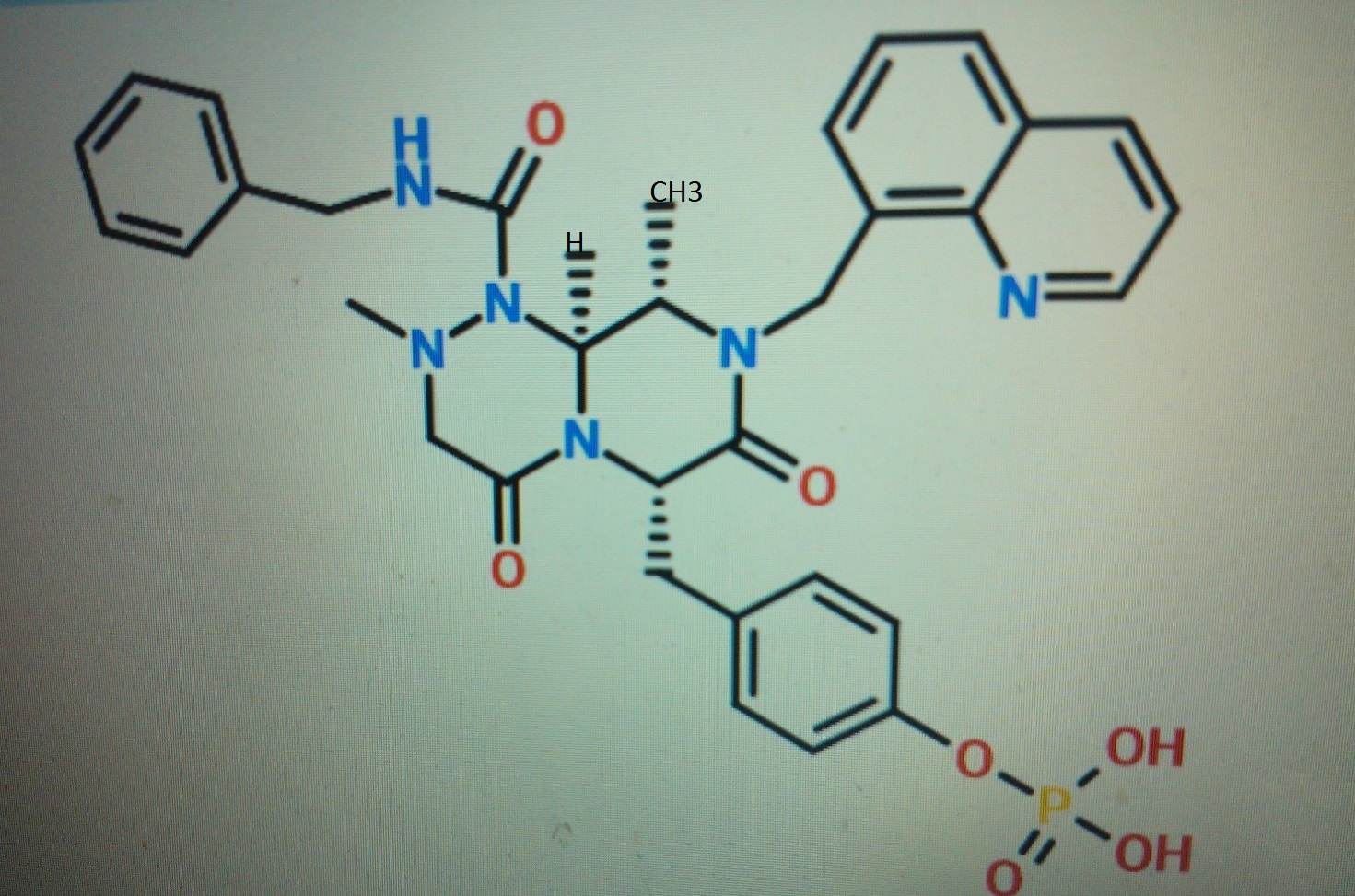 Nitrogen: dark blue, oxygen: red, hydrogen: light blue