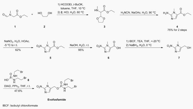 Evofosfamide can be synthesized in 7 steps.[9][10]