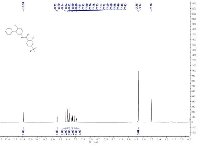 Then, the compound of formula II with a compound of formula I, to give 2-chloro -N- (4- chloro-3- (pyridin-2-yl) phenyl) -4- (methylsulfonyl) benzamide;
