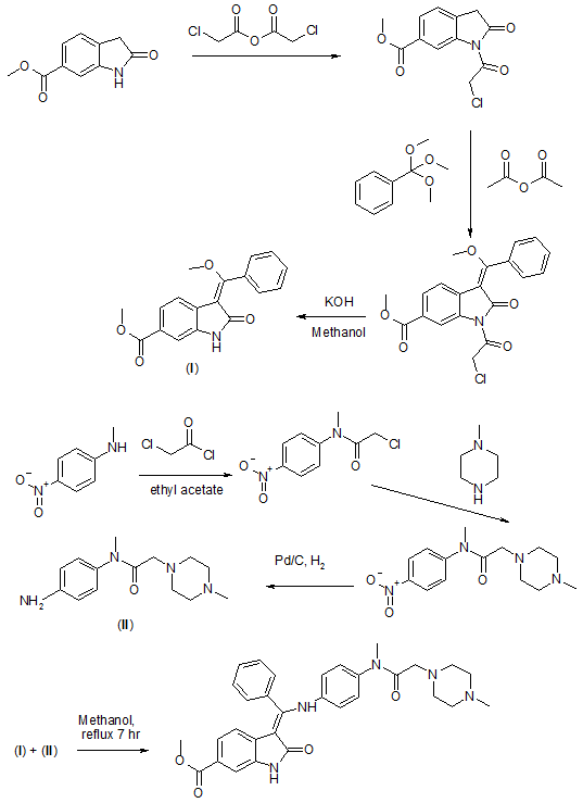 The resulting solids (40 g) and 5% Pd/ Alumina were charged to a Parr reactor followed by THF (160 mL). The reactor was sealed and purged with nitrogen (6 x 20 psig) followed by a hydrogen purge (6 x 30 psig). The reactor was pressurized to 30 psig with hydrogen and agitated at room temperature for approximately 15 hours. The resulting slurry was filtered through a GF/F filter and concentrated to approximately 135 g solution. Heptane was added (120 mL), and the solution was stirred until solids formed. After an addition 2 – 3 hours additional heptane was added drop-wise (240 mL), the slurry was stirred for approximately 1 hour, then filtered. The solids were dried to afford the title compound.