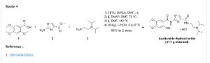 The first patent application CN200580028537 2_ hydroxyl _4,5_ dimethoxy benzoic acid and triphenyl phosphite placed in toluene, was added a few drops of concentrated sulfuric acid as a catalyst under reflux to give the intermediate 2-hydroxy – 4,5-dimethoxy-phenyl benzoate. After the above intermediate with 2-aminothiazol-4-carboxylate in place of toluene, was added triphenyl borate reacted, treated to give 2- [(2-hydroxy-4,5-dimethoxy- benzoyl) amino] -1,3-thiazole-4-carboxylate, and finally with N, N- diisopropylethylamine in toluene diamine salt in the system after the reaction.