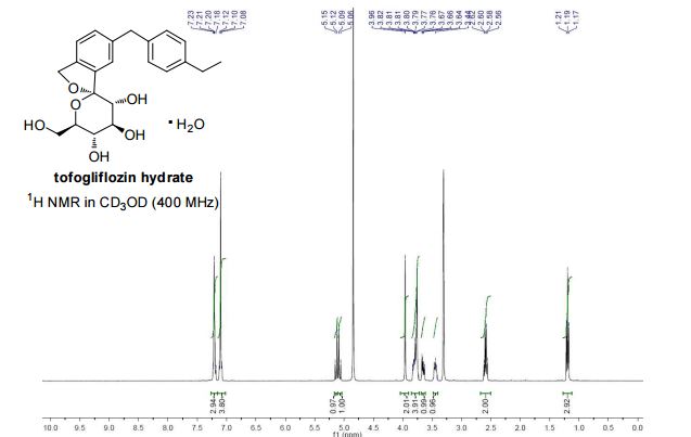 Tofogliflozin hydrate white solid with 99.56% purity by HPLC. Water content: 4.47%.