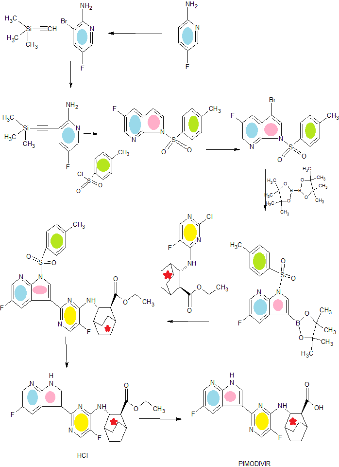 Janssen Pharmaceuticals, under license from Vertex Pharmaceuticals, was developing pimodivir (first disclosed in WO2010148197), a PB2 inhibitor, for treating influenza A virus infection. In December 2016, pimodivir was reported to be in phase 2 clinical development.